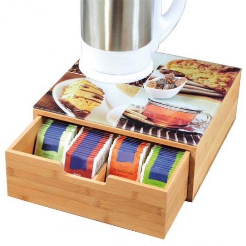 Werbeartikel-AngebotGepostet vor Box mit Glasabdeckung und Schublade mit 8 Fächern 'Manipur'
