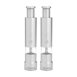 Artikel-Nr: CLP262960-032Ein Set aus zwei kompakten, praktischen Mühlen der Marke Brabantia, eine für Salz und eine für Pfeffer. Die Mühlen sind klein, aber robust und schwer. Aus Edelstahl mit transparentem Kunststofffenster für einen Blick auf den Inhalt. Einfach zum Nachfüllen zu öffnen. Mit einem S und einem P auf der Oberseite versehen. Die Mühlen sind mit einer Hand zu bedienen. Hergestellt aus 55% recyceltem Material. 100% recycelbar. Mit 5 Jahren Herstellergarantie. Brabantia ist B-Corp-zertifiziert; die Kollektion wird nach den höchstmöglichen ökologischen und sozialen B-Corp-Standards hergestellt.