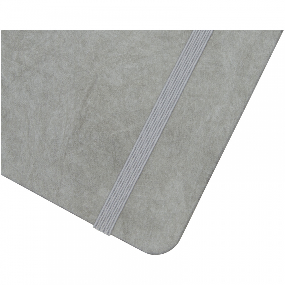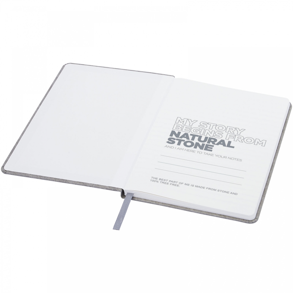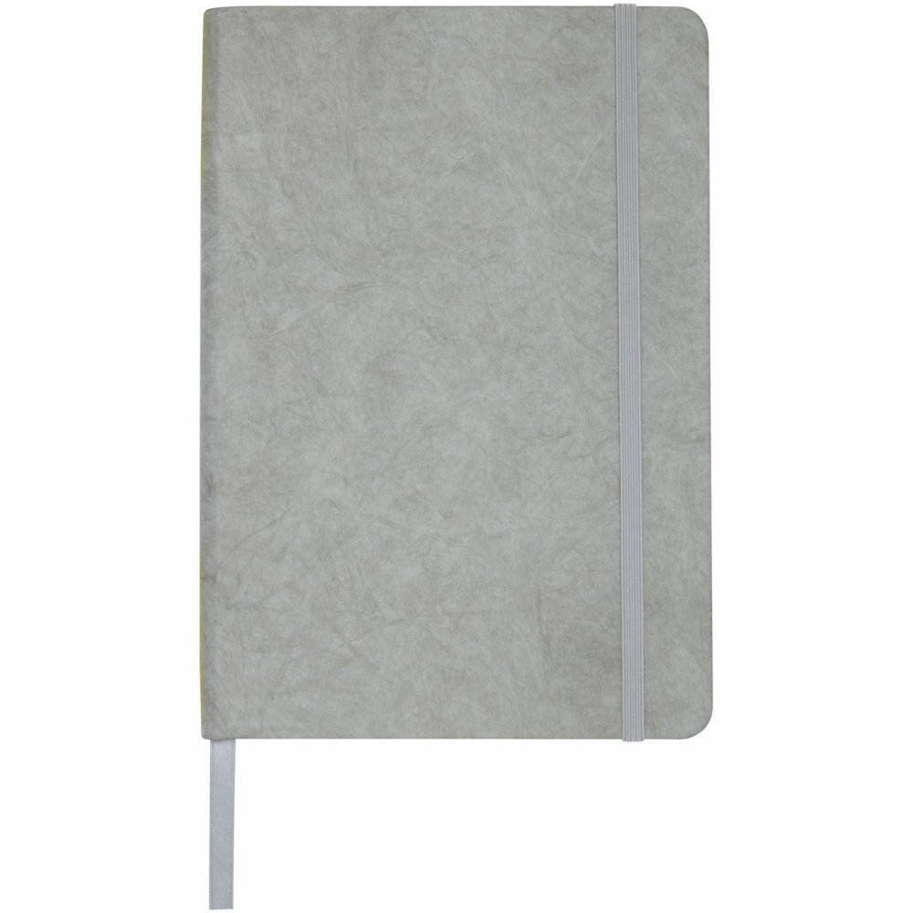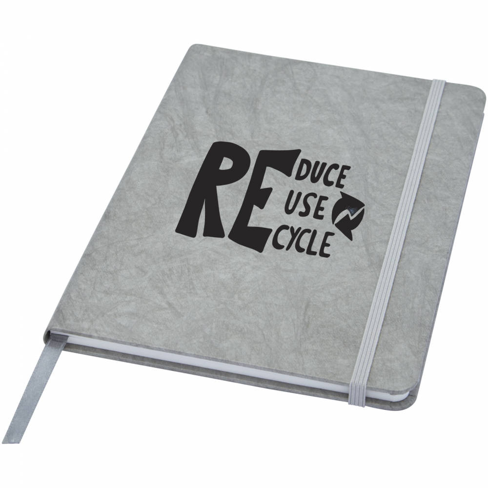 Artikel-Nr: CPO10774182A5 reißfestes Notizbuch mit Inhaltsseiten aus Steinpapier. Steinpapier ist 100 % holzfrei und der Produktionsprozess verbraucht weniger Energie als recyceltes oder neues Zellstoffpapier. Es ist wasserbeständig, sodass verschüttete Flüssigkeiten leicht abgewischt werden können. Verfügt über ein farblich abgestimmtes Leseband und ein Elastikband sowie 60 Blatt, 120 g / m² linierte Inhaltsseiten aus Steinpapier. Verpackt in einer Kartonhülle.