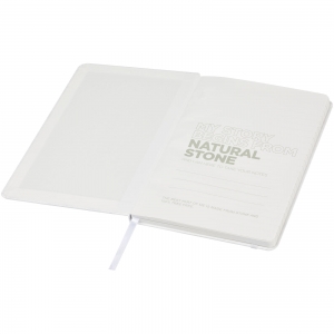 Artikel-Nr: CPO10774101A5 reißfestes Notizbuch mit Inhaltsseiten aus Steinpapier. Steinpapier ist 100 % holzfrei und der Produktionsprozess verbraucht weniger Energie als recyceltes oder neues Zellstoffpapier. Es ist wasserbeständig, sodass verschüttete Flüssigkeiten leicht abgewischt werden können. Verfügt über ein farblich abgestimmtes Leseband und ein Elastikband sowie 60 Blatt, 120 g / m² linierte Inhaltsseiten aus Steinpapier. Verpackt in einer Kartonhülle.