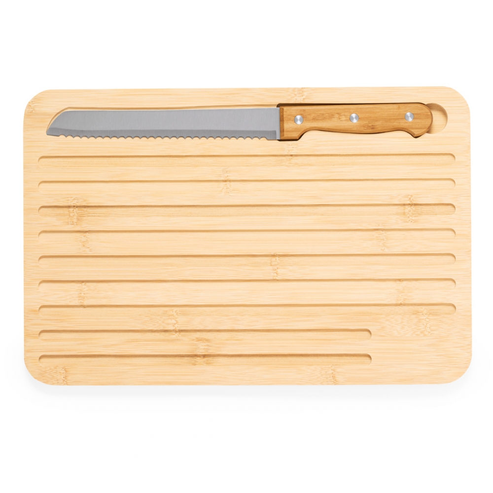 Artikel-Nr: KTO20574000000Küchenbrett aus Bambus, inklusive Messer. Mit einer glatten Seite, die für verschiedene Zwecke geeignet ist, und einer gestanzten Seite, ideal zum Schneiden von Brot oder saftigen Lebensmitteln. Inklusive Fach mit Messer darin (Sägestahlklinge und Bambusgriff). Materialien wie Bambus fördern die Verwendung natürlicher Rohstoffe und reduzieren so den Schadstoffausstoß. Darüber hinaus stammt Bambus aus einer äußerst widerstandsfähigen und vielseitigen Pflanze mit schnellem Wachstum und Regeneration, was ihn zu einer hervorragenden Alternative zu herkömmlichem Holz macht.