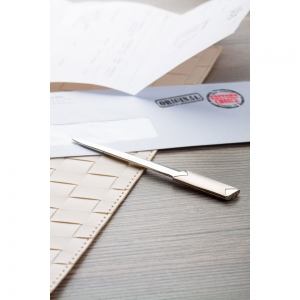 Artikel-Nr: AND845119Verchromter Brieföffner aus Metall in einer schwarzen Geschenkbox.