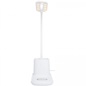 Artikel-Nr: CPO12424901Schreibtischlampe mit integriertem kabellosen Ladegerät und Stifthalter. Die Lampe hat 3 Beleuchtungsstufen (warm / kalt / mittel) und kann in der Höhe verstellt werden. Das kabellose Ladegerät leistet 10W und ist mit allen Qi-Geräten kompatibel (iPhone 8 oder höher und Android-Geräte, die kabelloses Laden unterstützen).