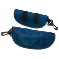 Versteiftes Brillenetui aus Textil mit Karabiner.