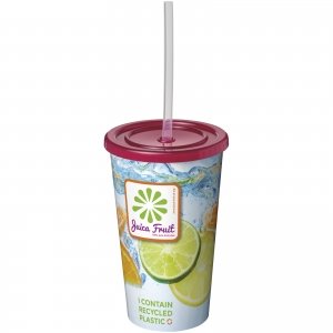 Artikel-Nr: CPO21002706Doppelwandiger Isolierbecher. Die äußere Schicht des Bechers ist aus recyceltem Kunststoff hergestellt. Der Becher verfügt über ein vollfarbiges, umlaufendes In-Mould-Label Design, das an das Produkt angepasst ist – für Strapazierfähigkeit und Haltbarkeit. Lieferung mit PE-Strohhalm. Das Fassungsvermögen beträgt 350 ml. Hergestellt in Großbritannien. Verpackt in einem kompostierbaren Beutel. BPA-frei und spülmaschinenfest.