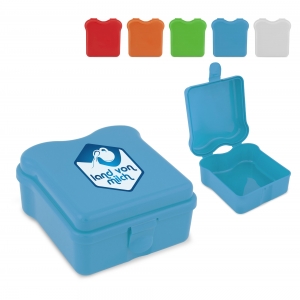 Artikel-Nr: ART91258N0032Brotdose in Form eines Sandwiches. Die Brotdose ist aus einem Teil gefertigt. Mit einem Clip auf der Vorderseite zum Verschließen der Box. Hergestellt in Deutschland.