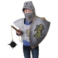 Für den furchtlosen Ritter! Stabile Karton-Rüstung für kleine Rittersleut'. Made in Germany. Achtung! Nicht geeignet für Kinder unter 36 Monaten.