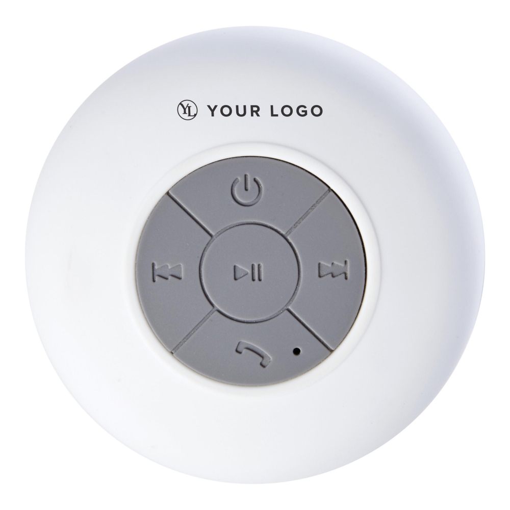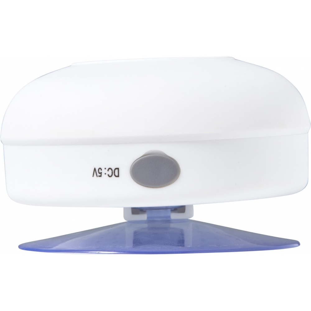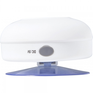 Artikel-Nr: GIV7631019BT / Wireless-Lautsprecher aus Kunststoff, wasserabweisend, Saugnapf zur Befestigung an glatten Oberflächen, inkl. Akku (3,7V Li-ion 400mAh), Output: 3W/5V, Ladezeit: ca. 4,5 Std., Laufzeit: ca. 2 Std.
