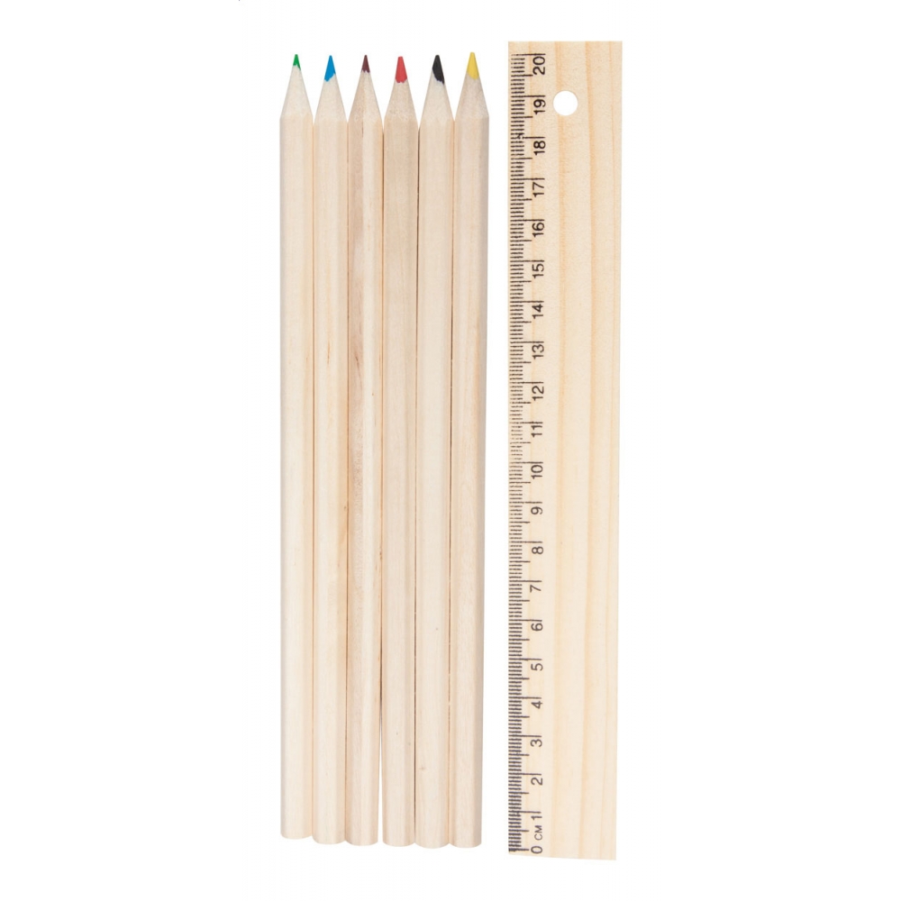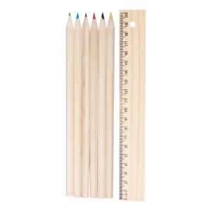 Artikel-Nr: AND8085106 Buntstifte in Holzbox mit Lineal (20cm).