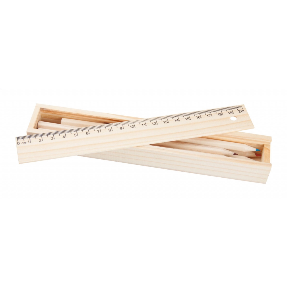 Artikel-Nr: AND8085106 Buntstifte in Holzbox mit Lineal (20cm).