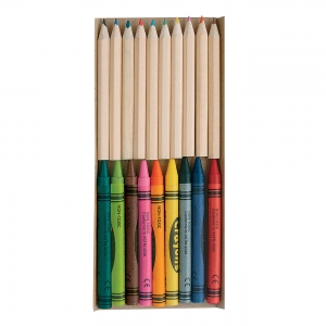 Artikel-Nr: AND761186Farbige Buntstifte (10 St.) und Wachsmalstifte (9 St.) als Set im Karton aus recycelter Pappe mit Sichtfenster.