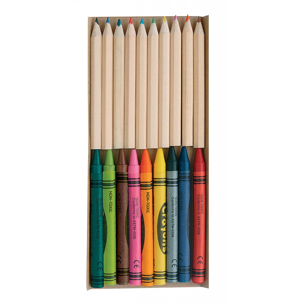 Artikel-Nr: AND761186Farbige Buntstifte (10 St.) und Wachsmalstifte (9 St.) als Set im Karton aus recycelter Pappe mit Sichtfenster.