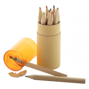 Artikel-Nr: AND812601-0312 Buntstifte mit Anspitzer in rundem Papp-Etui.