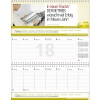 Tischquerkalender mit 3 Monatsübersicht, 1 Woche auf 2 Seiten, Terminuhrzeiten von 7-20 Uhr, 1-sprachig deutsch, mit Monatskennzeichnung, ca. 128 Seiten