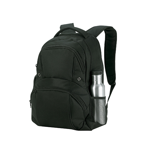 Vielseitiger Rucksack mit zwei Reißverschluss-Fächern an der Vorderseite sowie einem Seitenfach und einer Seitentasche aus Mesh-Gewebe.