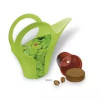 Inhalt: Kunststoff-Gießkännchen 0, 2 l mit Töpfchen 6 cm, Erdtablette und Samen: 3 Glückskleezwiebelchen. Wählbar in den Farben: weiß 01, grün 02, pink 03, gelb 04, orange 05.