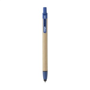 Artikel-Nr: CLP20293020WoW! Blauschreibender Kugelschreiber mit Recyclingkartongehäuse, gummierter Spitze zum Bedienen von Touchscreens und Kunststoffakzenten.
