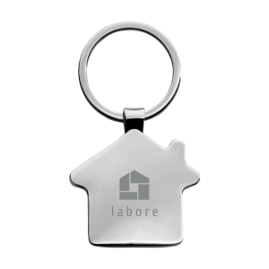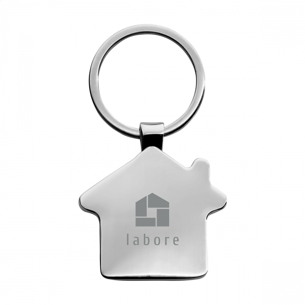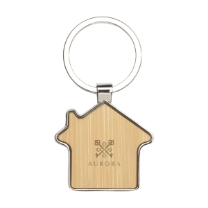 Artikel-Nr: CLP261364-823Schlüsselanhänger in Form eines Hauses. Mit hochglänzendem Metallgehäuse und Inlay aus Bambus.