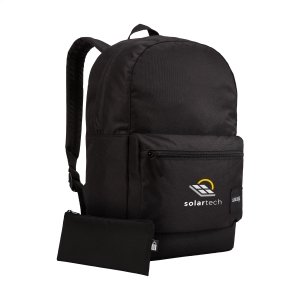 Artikel-Nr: CLP193798Wunderschön gestalteter Rucksack der Marke Case Logic. In diesem Rucksack aus recycelten Materialien sind Laptop, Tablet und sämtliche Schulsachen in Reichweite. Das flexible Laptopfach ist für Laptops bis zu 15,6 Zoll geeignet. Das großzügige Hauptfach bietet Platz für Bücher, Dokumente und Ordner. Das Fach an der Vorderseite bietet Ablagefächer für kleine elektronische Geräte und Stifte sowie Platz für kleine Accessoires. In der großen Seitentasche kann mühelos eine Wasserflasche aufbewahrt werden. Mit verstellbaren Schultergurten, die sich dem Körper anpassen. Die Tasche ist mit stabilen Reißverschlüssen ausgestattet. Das vollständig gepolsterte Rückenteil sorgt für zusätzlichen Tragekomfort. Der Rucksack wird mit einem separaten Etui mit Reißverschluss geliefert. Ideal für die Aufbewahrung von Schreibutensilien oder Kabeln. In dieser Tasche aus recyceltem Material wurden 11 PET-Flaschen verarbeitet. Fassungsvermögen ca. 24 Liter.