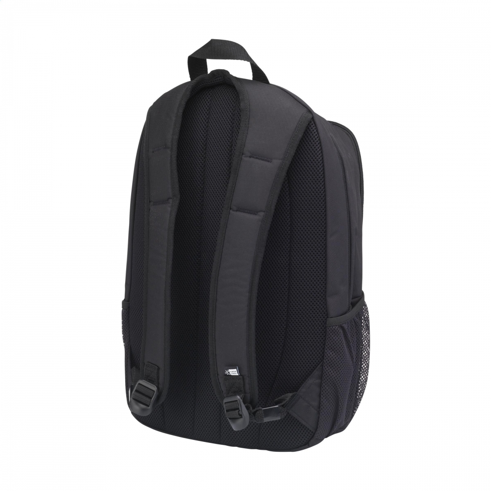 Artikel-Nr: CLP262070-001Kompletter 15,6-Zoll-Laptop-Rucksack der Marke Case Logic. Dieser Rucksack besteht aus 100 % recyceltem Polyester und recyceltem Dobby-Material. Der Rucksack lässt sich nahezu vollständig öffnen, sodass Sie alles effizient packen können. Das separate Laptopfach ist für Laptops bis 15,6 Zoll geeignet und mit schützendem Schaumstoff ausgestattet. Das großzügige Hauptfach bietet Platz für Bücher, Dokumente und Ordner. Mit mehreren Fächern, in denen zum Beispiel Kabel verstaut werden können. Das Reißverschlussfach auf der Vorderseite ist praktisch für Dinge, die man schnell zur Hand haben möchte, und in die praktischen Netztaschen an der Seite passt mühelos eine Wasserflasche. Mit verstellbaren, bequemen Schulterriemen und gepolstertem Griff. Die Tasche ist mit stabilen Reißverschlüssen ausgestattet. Das vollständig gepolsterte Rückenteil sorgt für zusätzlichen Tragekomfort. Fassungsvermögen ca. 23 Liter.