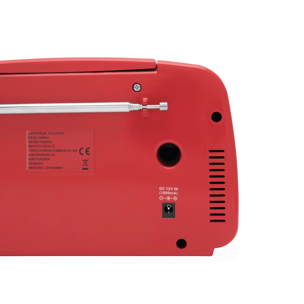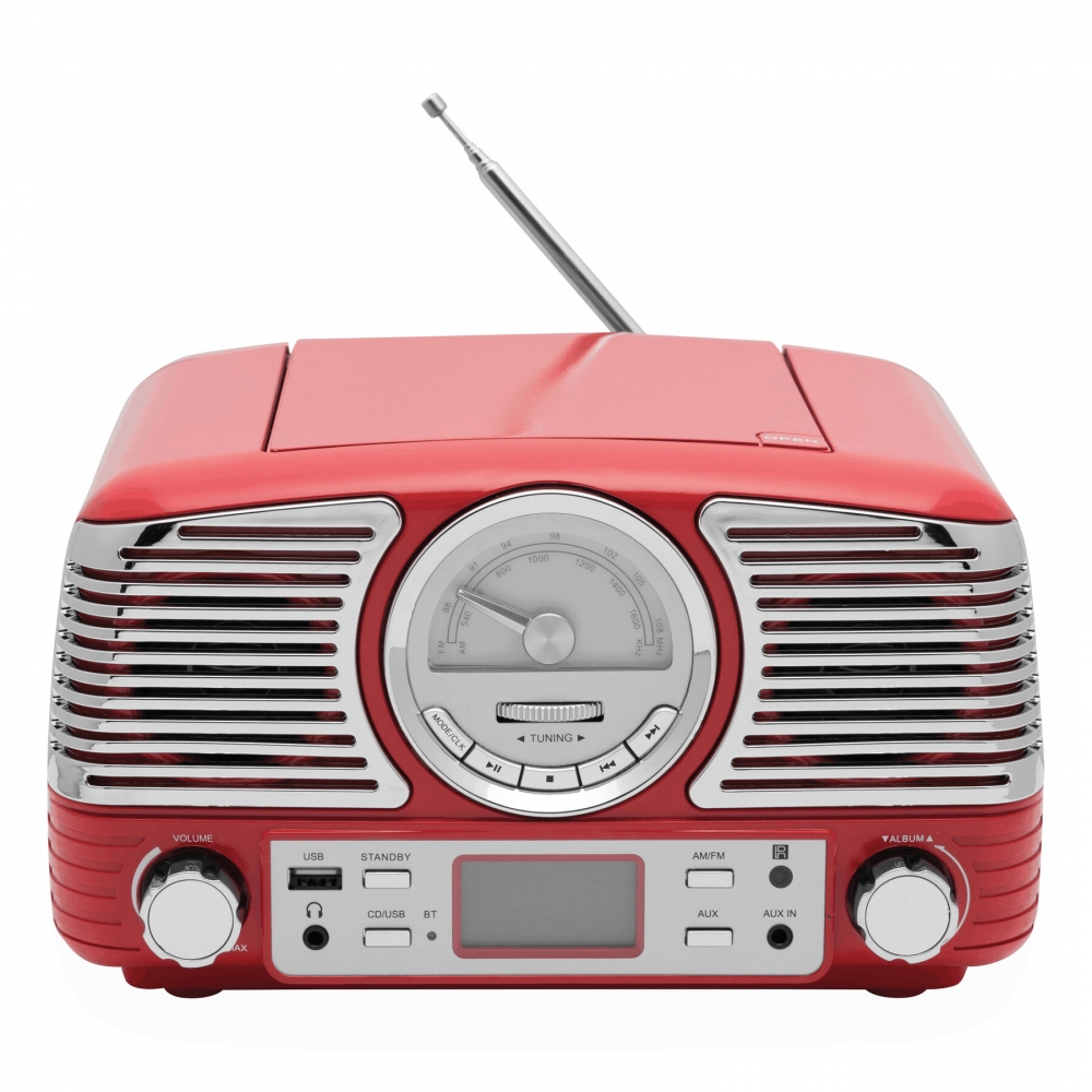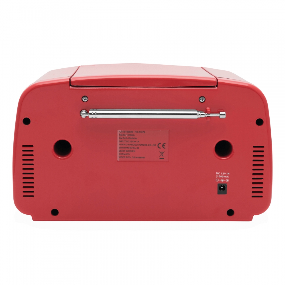 Artikel-Nr: INP58-8106028CD-Radiorekorder DINER: AMFM-Radio, CD-Player, zur Koppelung mit wireless-fähigen Geräten, kompatibel zu Bluetooth®, AUX-IN Funktion, Abspielen von MP3-Dateien über USB-Anschluss und CD, Kopfhöreranschluss, beleuchtetes Display, mit 12-Volt-Netzadapter, 2 Drehregler: laut / leise und für "Album vor / zurück" (im MP3-Modus), inkl. Infrarot-Fernbedienung, mit Bedienungsanleitung, in Box