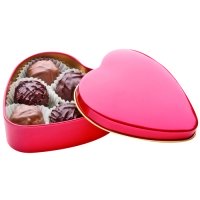 Inhalt: Herz-Dose mit 6 handgefertigten Champagner Trüffeln