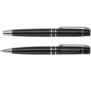 Artikel-Nr: GIV1058001Charles Dickens Schreibset 'Leeds' aus Metall, bestehend aus Dreh-Kugelschreiber und Rollerball, Zierringen aus Metall, verpackt in einem Geschenk-Etui aus PU.