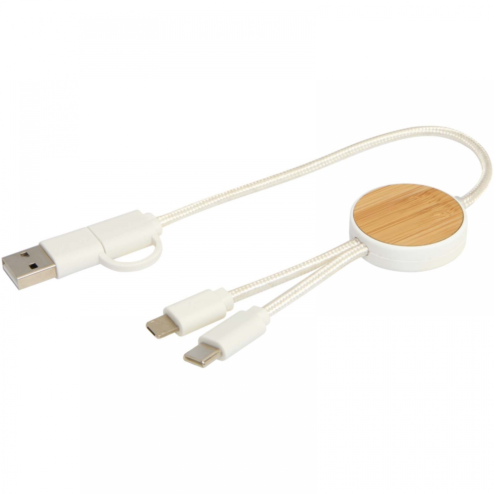 Artikel-Nr: CPO12442101Das Chechia 27 W 5-in-1 Daten- und Schnellladekabel besteht aus recyceltem Kunststoff und ist mit verantwortungsvoll angebautem Bambus verziert. Das Kabel verfügt über einen USB-A- und einen Typ-C-Eingang sowie einen kombinierten Typ-C- und Lightning / Micro-USB-Ausgang. USB-A zu USB-C liefert max. 27 W Ausgangsleistung, alle anderen Anschlüsse max. 15 W. Kompatibel mit CarPlay und Android Auto. Ob zu Hause, im Büro oder unterwegs, das Chechia Kabel bietet Leistung und Stil in einem kompakten Paket. Länge des Kabels: 30 cm.