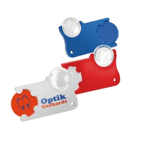 Artikel-Nr: HLA8286-4-3Chiphalter mit 1€-Chip und Lupe ohne Gliederkette, ohne Schlüsselring. Farbkombinationen möglich. Druckkosten pro Position