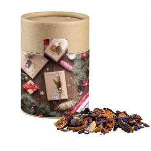Artikel-Nr: FNM01681Kraftpapierdose Midi aus Papier. Werbeanbringung als Etikett in 4c individuell bedruckbar. Zutaten Christkindl Tee: Apfel, Hibiscusblüten, Zimt, Orangenschalen, Nelken, Hagebuttenschalen, Kornblumenblüten, Aroma.