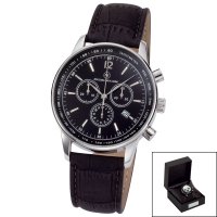 Artikel-Nr: 57321980SW-SWEdelstahl-Chronograph poliert mit Schraubboden, wasserdicht 5 bar nach DIN 8310, feines Armband in Croco-Lederoptik mit Edelstahl-Dornschließe, gehärtetes Mineralglas, Schweizer Markenuhrwerk Ronda 5030 mit Zentral-Stoppsekunde und Datumsfunktion, 5 Jahre Garantie, Designerbox inkl.