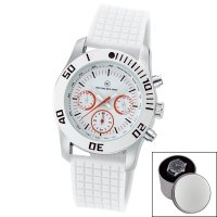 Artikel-Nr: 57321770WS-WSChronograph mit Metallgehäuse glänzend mit hochwertiger IP-Beschichtung, wasserdicht 3 bar, hochwertiges Silikon-Sportarmband mit Edelstahl-Dornschließe, gehärtetes Mineralglas, Zeiger fluoreszierend, Markenuhrwerk JS20 von Miyota (by CITIZEN) mit 24-Stunden-Anzeige, 5 Jahre Garantie, Metalldose inkl.