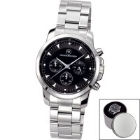 Artikel-Nr: 57321890SW-MBChronograph mit Metallgehäuse glänzend mit hochwertiger IP-Beschichtung, Kronenschutz, wasserdicht 3 bar, Massiv-Edelstahl-Gliederarmband mit Faltschließe, gehärtetes Mineralglas, Markenuhrwerk mit 24-Stunden-Anzeige, 5 Jahre Garantie, Metalldose inkl.