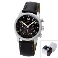 Artikel-Nr: 57321710CH-SWChronograph mit Metallgehäuse matt mit hochwertiger IP-Beschichtung, wasserdicht 3 bar, Echtlederband aus feinstem Rindsleder mit Edelstahl-Dornschließe, gehärtetes Mineralglas, Zeiger und Stundenindex fluoreszierend, Markenuhrwerk mit 24-Stunden-Anzeige, 5 Jahre Garantie, Design-Alubox inkl.