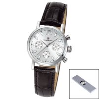 Artikel-Nr: 57321705CH-SWChronograph mit Metallgehäuse glänzend mit hochwertiger IP-Beschichtung, wasserdicht 3 bar, Echtlederband aus feinstem Rindsleder mit Edelstahl-Dornschließe, gehärtetes Mineralglas, Markenuhrwerk mit 24-Stunden-Anzeige, 5 Jahre Garantie, Kartonverpackung inkl.