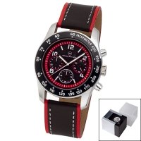 Artikel-Nr: 57321260RO-SWChronograph mit Metallgehäuse glänzend mit hochwertiger IP+Beschichtung, wasserdicht 3 bar, aufwändig verarbeitetes Echtlederband aus feinstem Rindsleder mit Edelstahl-Dornschließe, gehärtetes Mineralglas, Zeiger fluoreszierend, Markenuhrwerk JS20 von Miyota (by CITIZEN) mit 24-Stunden-Anzeige, 5 Jahre Garantie, Design-Alubox inkl.
