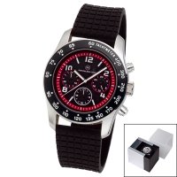 Artikel-Nr: 57321880RO-SWChronograph mit Metallgehäuse glänzend mit hochwertiger IP-Beschichtung, wasserdicht 3 bar, hochwertiges Silikon-Sportarmband mit Edelstahl-Dornschließe, gehärtetes Mineralglas, Zeiger fluoreszierend, Markenuhrwerk JS20 von Miyota (by CITIZEN) mit 24-Stunden-Anzeige, 5 Jahre Garantie, Design-Alubox inkl.
