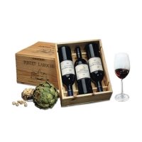 Artikel-Nr: 7980701Sechs Flaschen rebsortenreiner Merlot, In der Original-Bordeaux-Holzkiste und im Umkarton bruchsicher und versandfertig verpackt.