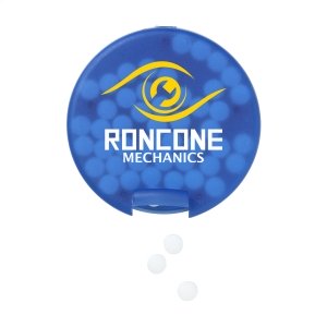 Artikel-Nr: CLP28153060Runder Kunststoff-Spender gefüllt mit ca. 12 Gramm (ca. 55 Stück) frischen, zuckerfreien Pfefferminz.