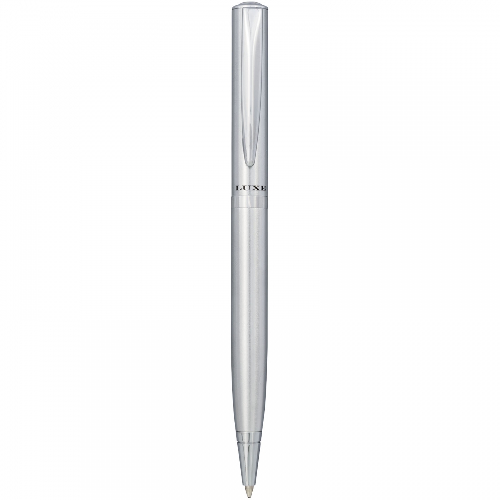 Artikel-Nr: CPO10712501Der leichte Kugelschreiber kommt mit einem exklusiven Design, erhältlich in einer matt-gebürsteten Gold-Ausführung mit goldfarbenen Akzenten und matt-gebürstetem Silber mit chromfarbenen Akzenten. Inklusive einer hochwertigen schwarzen Ersatzmine und verpackt in einer "LUXE"-Geschenkschachtel (16,5 x 4,5 x 2,8 cm).