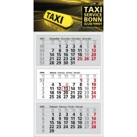 Papierwandkalender mit 3 Monaten auf 3 einzelnen Blöcken, Druck auf angehefteter Kopflasche, 4-sprachig (D, GB, F, NL)