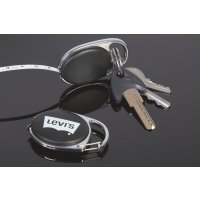 Sympathischer, kleiner Schlüsselanhänger mit Bandmaß 1m.Schwarzes Gehäuse wird mit Chromring eingefasst. Metallkarabinerhaken mit Federtechnik zum leichten Einfädeln von Schlüsseln.