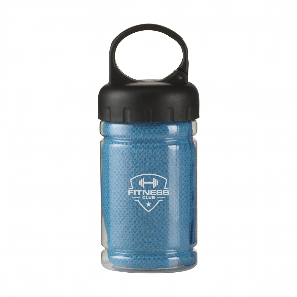 Artikel-Nr: CLP263128-018Spezielles Kühlhandtuch aus 100 % Polyester. Nach dem Eintauchen in kaltes Wasser kann dieses Handtuch bei sportlichen Aktivitäten oder Sonnenbrand kühlen. Maße 30 x 80 cm. Ideales Format, um es zur Kühlung im Nacken zu tragen. In transparentem Gehäuse mit ABS-Schraubverschluss mit Karabinerhaken.