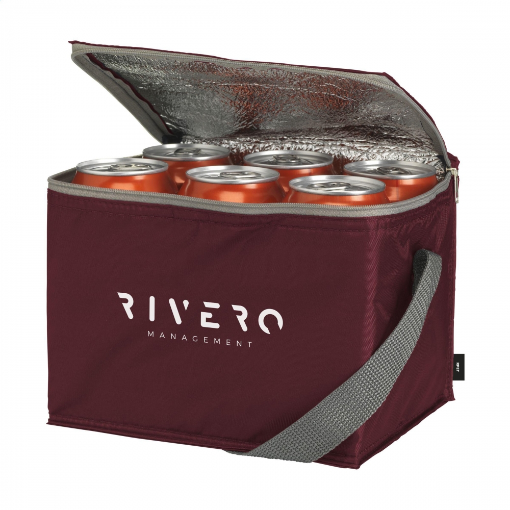 Artikel-Nr: CLP261237-010Kühltasche aus 210D-RPET-Polyester: hergestellt aus recycelten PET-Flaschen. Geeignet für 6 Getränkedosen. Mit Trageriemen. GRS-zertifiziert. Fassungsvermögen ca. 3,5 Liter.