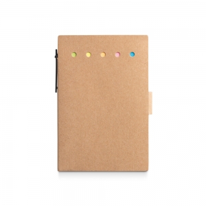 Artikel-Nr: PST93791-160Haftnotizblock mit Hardcover aus Karton, 6 farbigen Sätzen (je 25 Blatt), einem Notizblock (70 g / m²) mit 100 unlinierten Seiten und einem Kugelschreiber. Dieses Produkt wird aus FSC™-zertifiziertem Material und anderen kontrollierten Materialien hergestellt. 100 x 150 mm