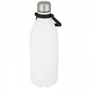 Artikel-Nr: CPO10071001Extra große Vakuum-Isolierflasche aus Edelstahl im kultigen Design mit komfortablem Griff zum einfachen Tragen. BPA-frei, geprüft und zugelassen nach dem deutschen Lebensmittelrecht (LFGB). Auf Phthalate geprüft und zugelassen gemäß den REACH-Vorschriften. Das Volumen beträgt 1,5 Liter. Handwäsche empfohlen. Verpackt in einer Geschenkbox aus Recyclingkarton. Hält Getränke 12 Stunden heiß und 48 Stunden kalt.