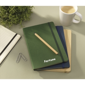 Artikel-Nr: CLP314170WoW! A5-Notizbuch mit Hardcover aus FSC Mix zertifiziertem Karton. Das Notizbuch umfasst ca. 80 Blatt/160 Seiten cremefarbenes, liniertes FSC Mix zertifiziertes Papier (70 g / m²). Mit gebundenem Buchrücken und praktischem Gummiverschluss.