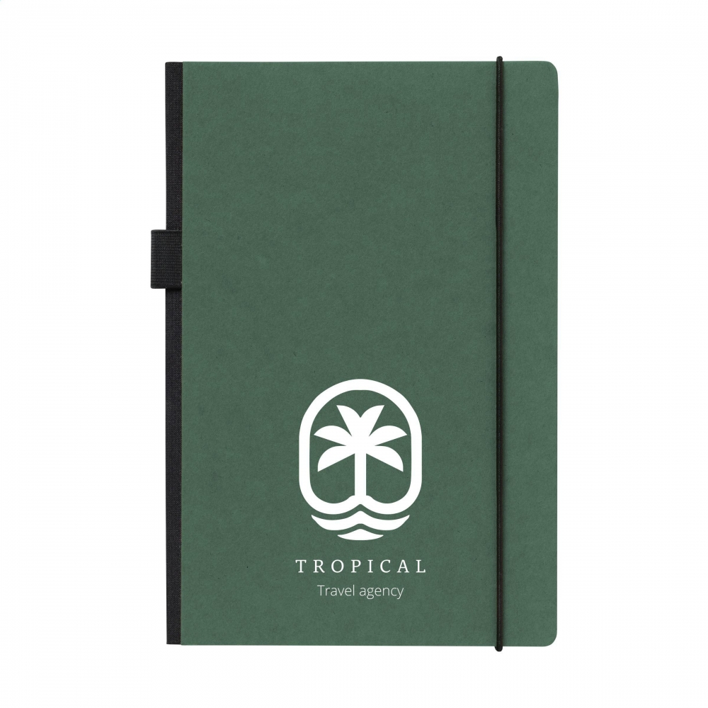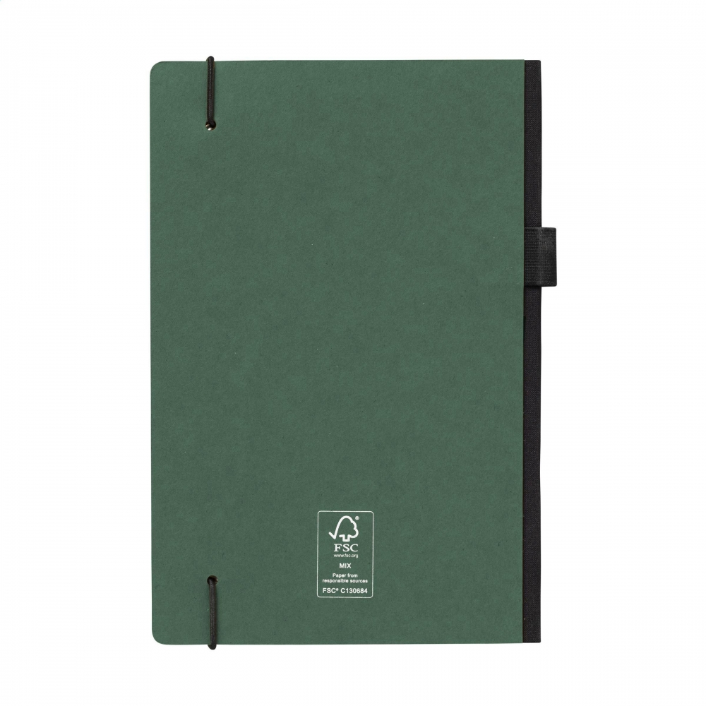 Artikel-Nr: CLP262073-004Praktisches Notizbuch im A5-Format. Mit festem Einband aus Kraftkarton (300 g / m²). Das Buch umfasst ca. 80 Blatt/160 Seiten cremefarbenes, liniertes FSC Mix zertifiziertes Papier (80 g / m²). Mit praktischem Verschlussgummi und Stiftschlaufe. Auf der Innenseite des hinteren Deckels befindet sich ein praktisches Aufbewahrungsfach.