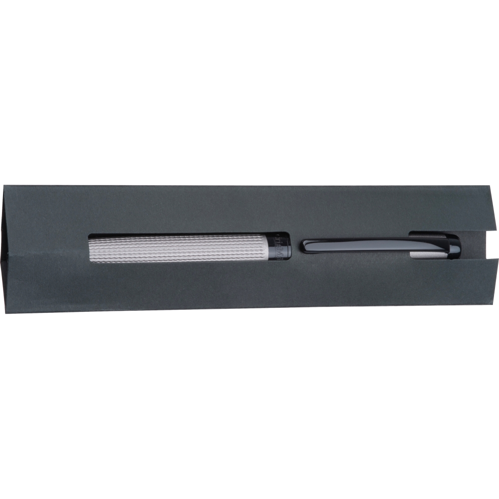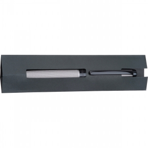Artikel-Nr: MCM1512707Grauer Edelstahl Drehkugelschreiber in mattem Design mit schwarzen Applikationen und blau schreibender Großraummine. Ihre Werbung wird rechts vom Clip graviert.