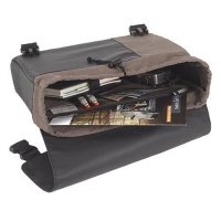 Hauptfach mit Kordelzug, großes Reißverschluss-Innenfach mit aufgesetzen Organizer-Elementen, Überschlag mit Steckschnallen, längenverstellbarer Schultergurt